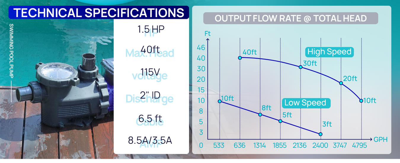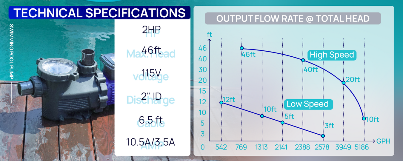 Dual Speed Pool Pumps, 1.5 HP & 2 HP, 4975GPH to 5186GPH, 115V