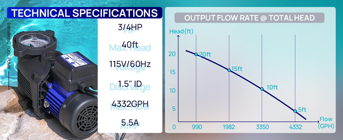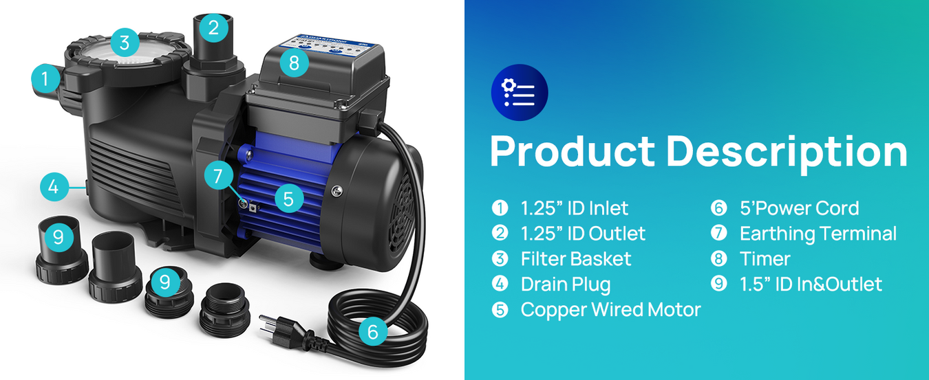 PSP066T-LV 3/4 HP 115V Pool Pump with Timer, 4332 GPH