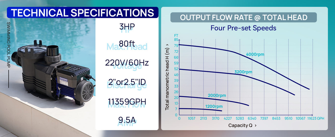 PSP300PM 3 HP, 220V Pool Pump Variable Speed, 11359GPH