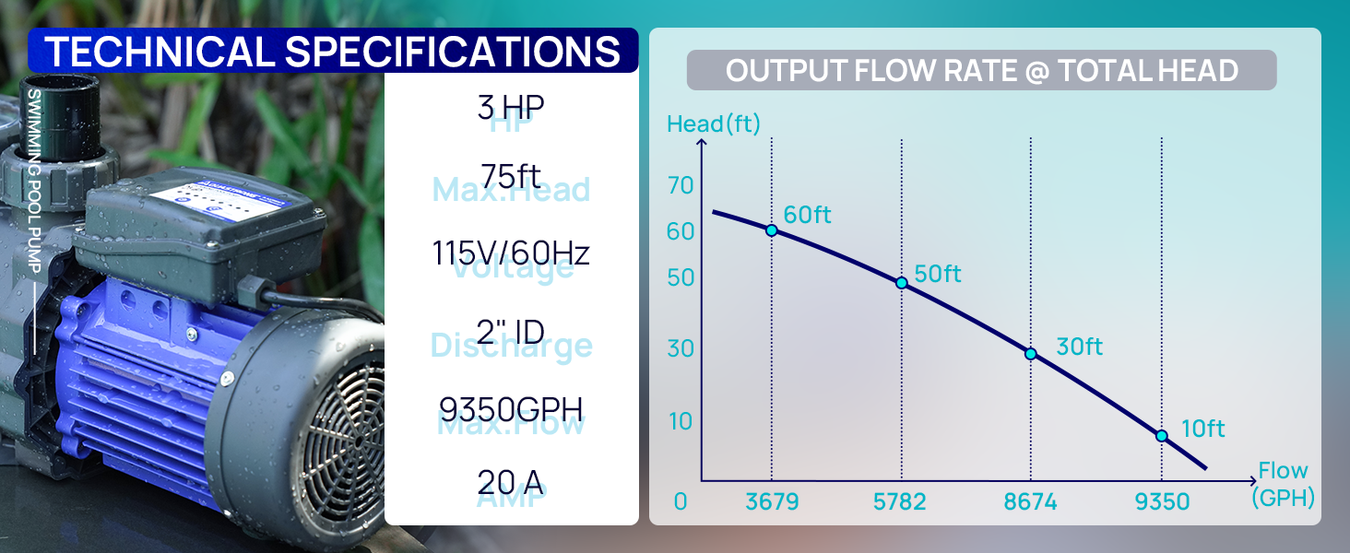 PSP300T-LV 3 HP 115V Pool Pump with Timer, 9350 GPH