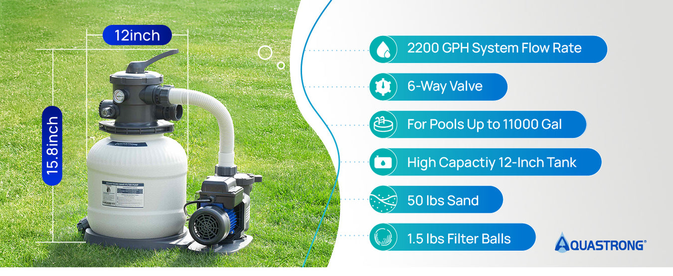 SFPV121T 2/3 HP Sand Filter Pump 3000GPH with Timer 12in Up to 11000GAL