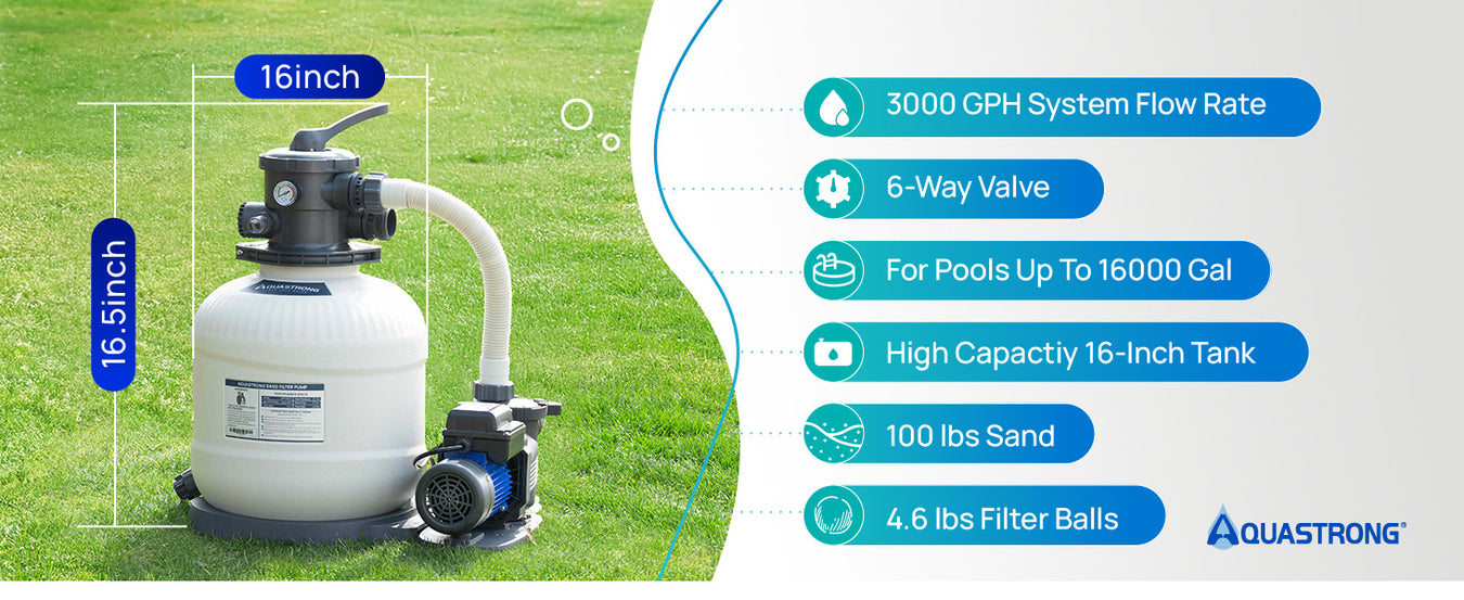 SFPV160T 3/4 HP Sand Filter Pump 3800GPH with Timer 16in Up to 16000GAL