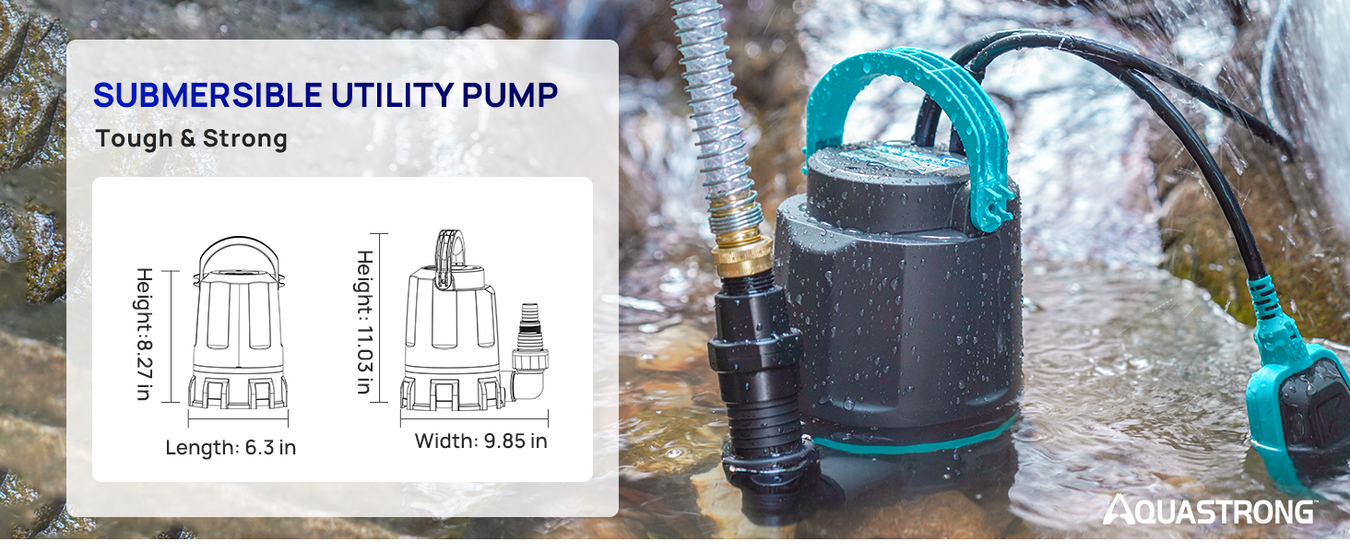 AQUASTRONG Utility Pumps 1/2 HP & 1 HP with Float Switch, Up to 4500GPH, Submersible Water Pump with 10ft Long Power Cord