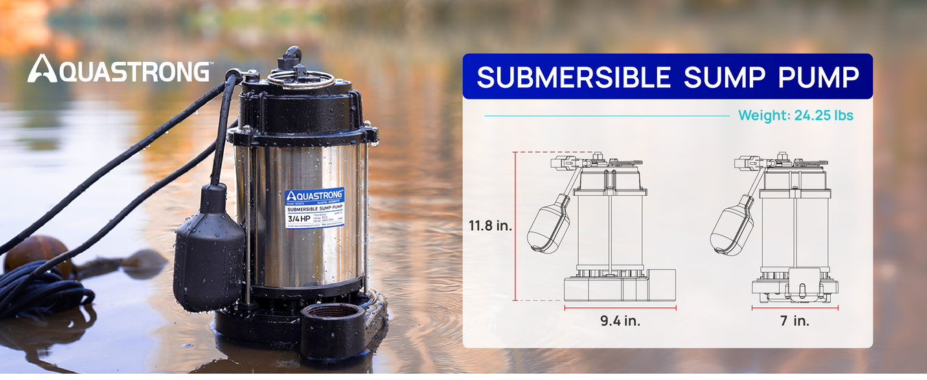 SES075 3/4 HP Sump Pump Stainless Steel, 4890 GPH