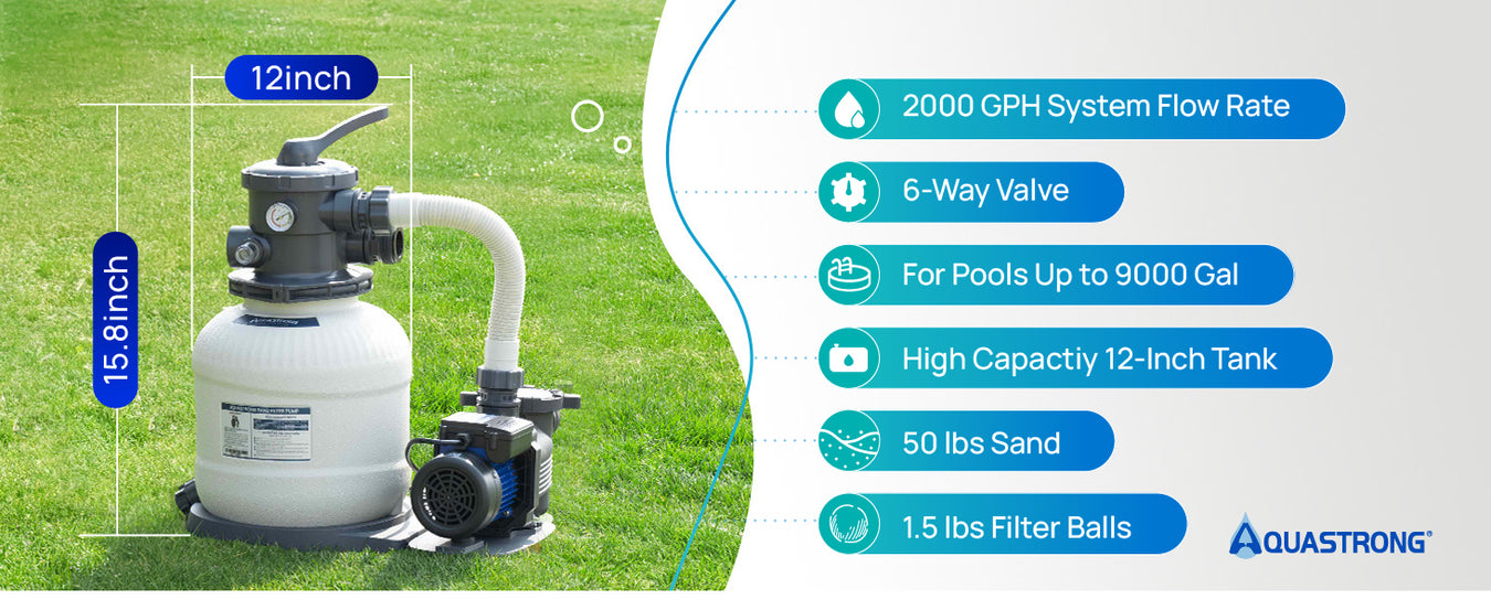 SFPV120 1/2 HP Sand Filter Pump 2500GPH, 12in Up to 9000GAL