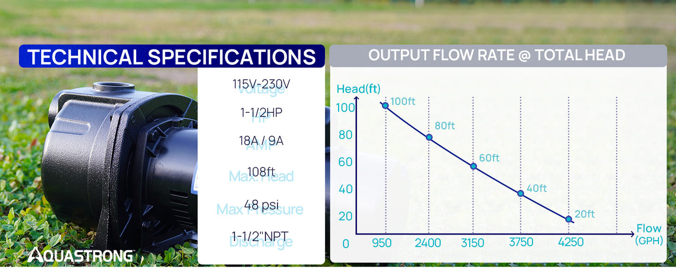 MAX.Q: 4250 GPH(1.5 HP) & 5200 GPH(2 HP)