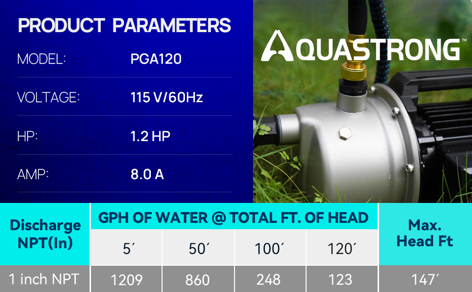 PGA120 1.2 HP 115V Shallow Well Pump, 1209 GPH