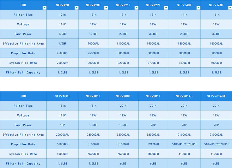 Sand Filter Pumps 115V 12in to 20in With Timer, 1/2 HP to 2 HP, Max 8917GPH for Pools Up to 38000GAL, 6-Way Valve